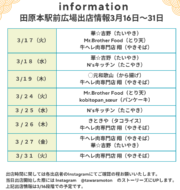 【田原本駅前出店情報】 3月16日~31日まで
