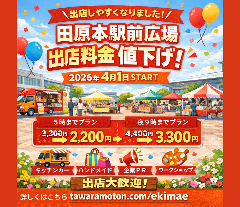 【田原本駅前出店情報】 3月1日~15日まで