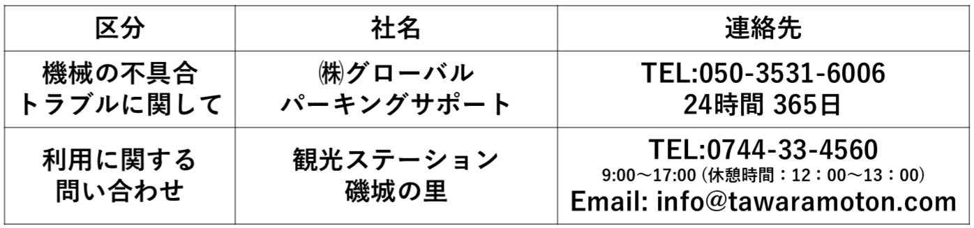 問い合わせや各種手続きについては、田原本駅東側の観光ステーション磯城の里にて対応します。